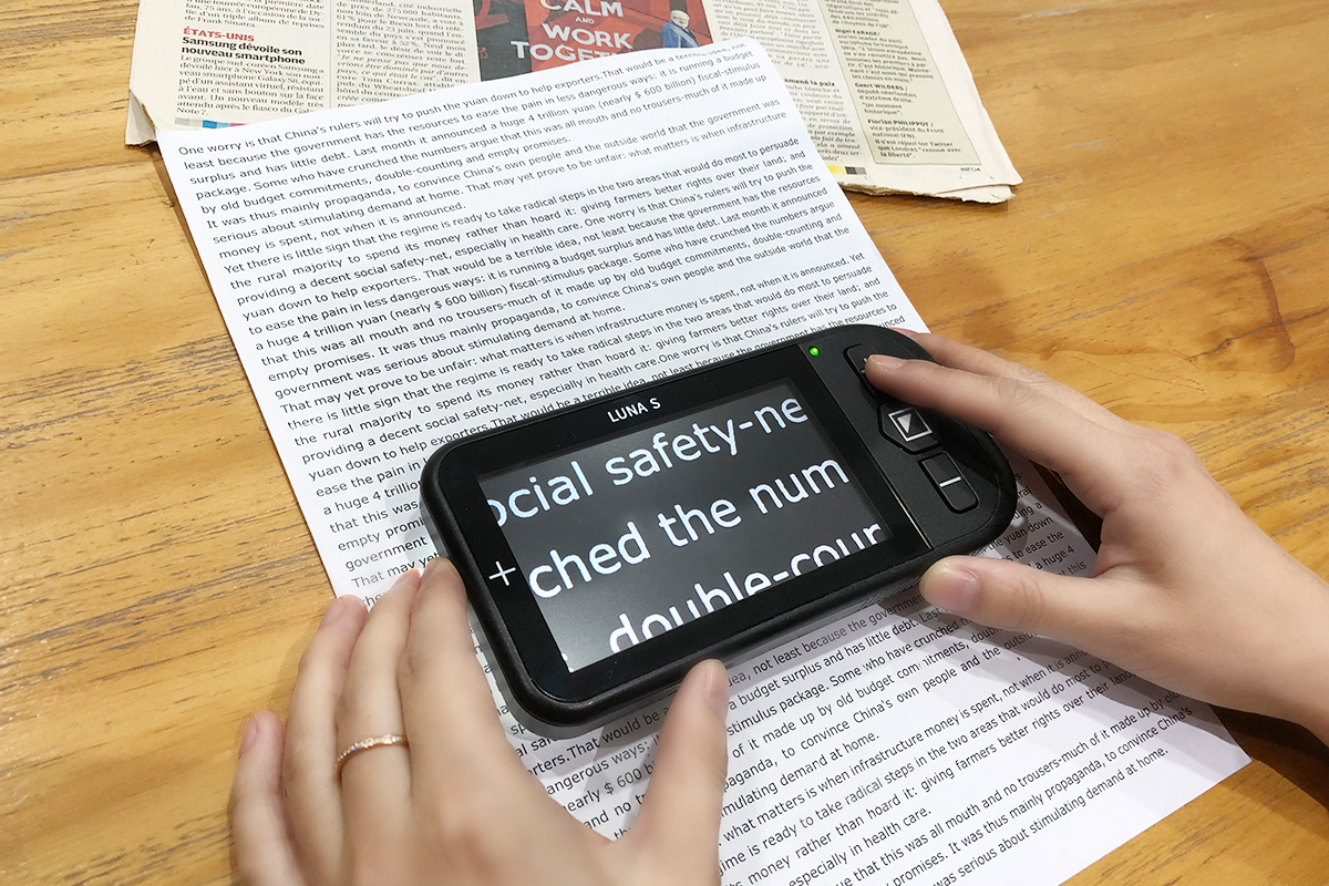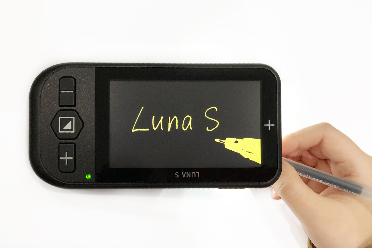 LUNA-S, where the S stands for ‘simple’. An easy to use portable video magnifier which provides crystal clear images at a range of magnifications up to 19x in various colour modes. The unit allows you to put the magnifier on or close to the object for zoom or freeze the image for further viewing. It also has an integrated fold-away writing stand as well as FM radio function and flashlight mode. The LUNA-S is ideal for all of your viewing needs including labels and text.